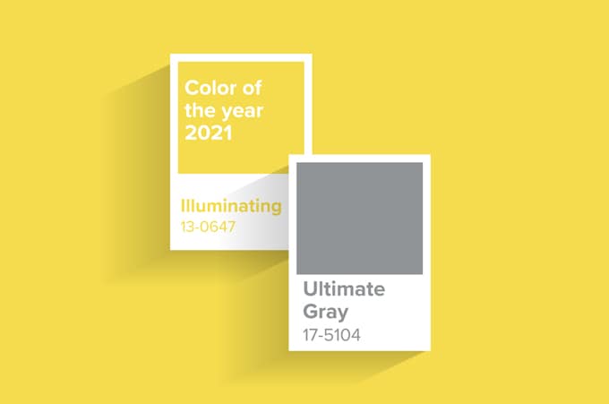 Voor 2021 krijgen we dit jaar twee kleuren. Twee onafhankelijke kleuren die benadrukken hoe verschillende elementen samenkomen om elkaar te ondersteunen. Ultimate Grey (grijs #939597) en Illuminating (citrusgeel #F5DF4D).